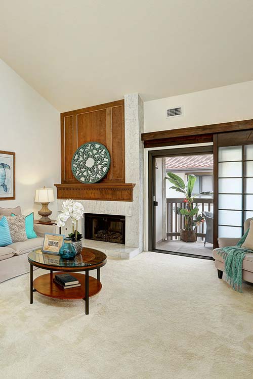 Rarely do these top floor corner two plus den units come on the market! In the popular Villas del Rey complex, this is one of the most sought after floor plans with high ceilings, extra windows, and ample square footage. Open living room/dining area has a fireplace and sliding doors out to the courtyard facing balcony. Kitchen has a breakfast counter, and updated stainless steel dishwasher, stove, microwave, and side by side refrigerator/freezer. The master suite with walk-in closet and private full bath is on one side of the unit. The den (or third bedroom) is excellent size and has an east facing window with morning light...a hallway bath accommodates the den and the final bedroom, which has a full wall of mirrored closets. Laundry hook- ups for stackable appliances. Villas del Rey offers a club house and gym, pool and spa and tennis courts!